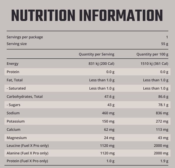 Also available, the Fixx Fuel X, without the added ingredients L-Alanine and L-Leucine 560mg.