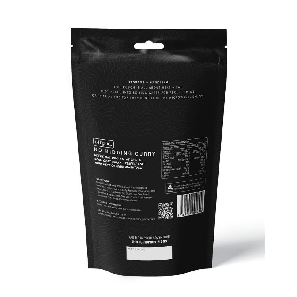 Australian Goat Meat (36%), Diced Tomatoes [Diced Tomatoes, Tomato Juice, Acidity Regulator (Citric Acid)], Red Onion, Carrots, Sunflower Oil, Gluten Free Corn Starch, Coriander, Ginger, Garlic, Sea Salt, Cumin, Chilli, Turmeric, Cardamom, Star Anise, Cinnamon, Cloves.