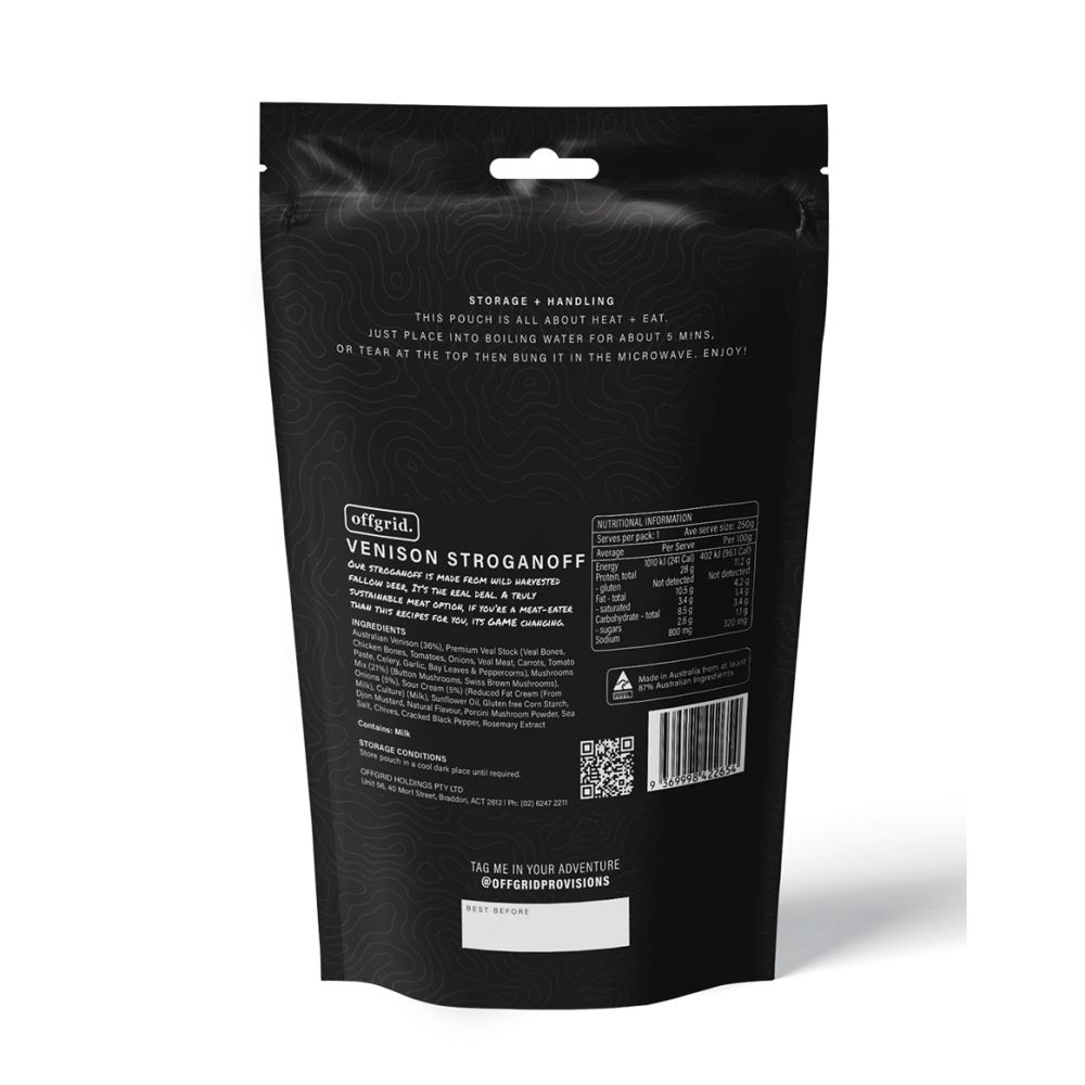 Australian Venison (36%), Premium Veal Stock (Veal Bones, Chicken Bones, Tomatoes, Onions, Veal Meat, Carrots, Tomato Paste, Celery, Garlic, Bay Leaves & Peppercorns), Mushrooms Mix (21%) (Button Mushrooms, Swiss Brown Mushrooms), Onions (5%), Sour Cream (5%) (Reduced Fat Cream (From Milk), Culture) (Milk), Sunflower Oil, Gluten free Corn Starch, Djon Mustard, Natural Flavour, Porcini Mushroom Powder, Sea Salt, Chives, Cracked Black Pepper, Rosemary Extract.